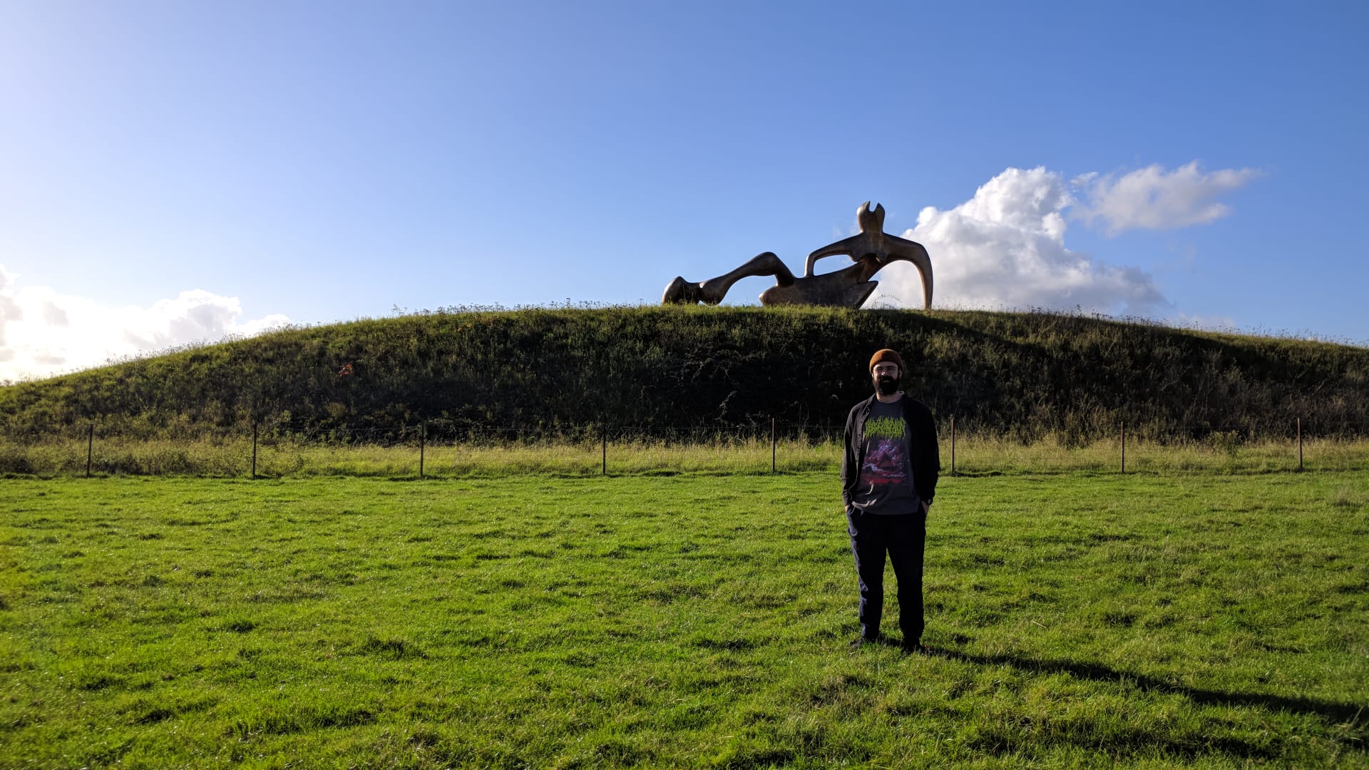 Ed and I spent a warm, sunny Autumn afternoon at the Henry Moore Gardens and Studios in Hertfordshire. Amazing place. This figure in particular was mind-bending.